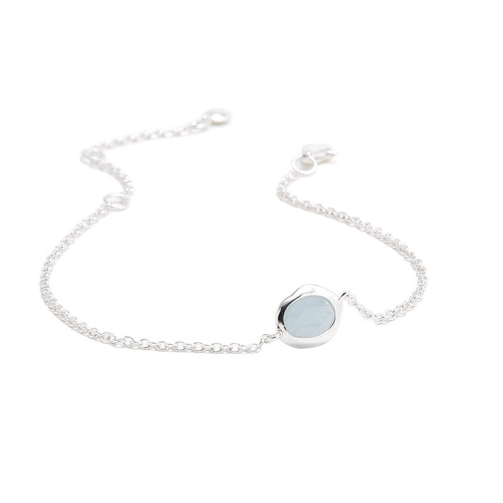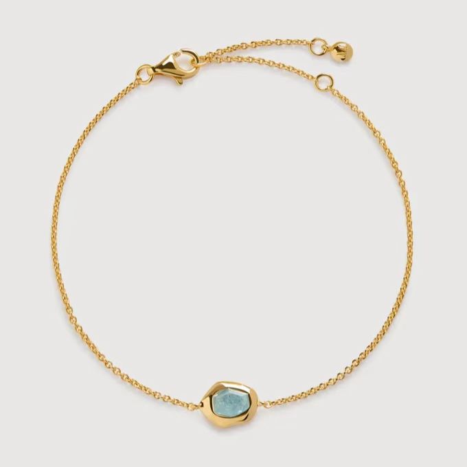 Answer 1: The bracelet is crafted from high-quality S925 silver that is gold-plated, ensuring both durability and a luxurious finish. It also features natural gemstones, specifically genuine green agate and aquamarine, for added elegance and appeal.